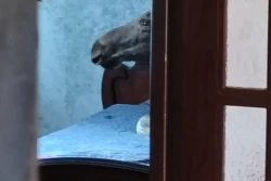 «Лось лежал на кровати в спальне у телевизора». В Бобруйске дикое животное запрыгнуло в дом и устроило погром