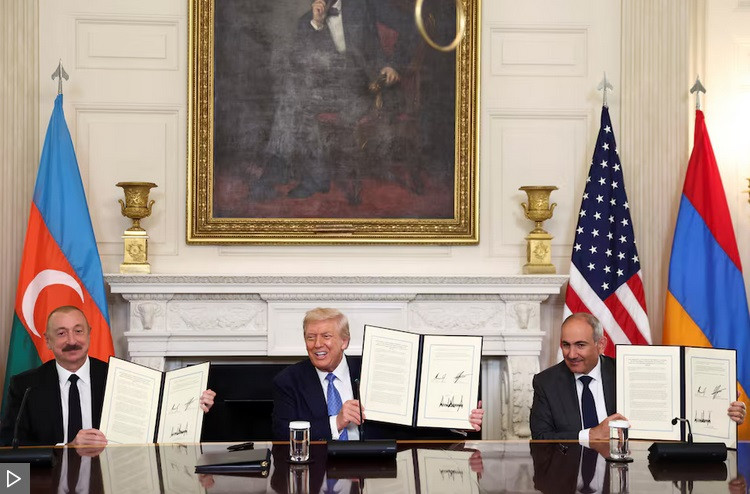 Азербайджан и Армения подписали мирное соглашение при посредничестве США во время встречи с президентом США Дональдом Трампом в пятницу, 8 августа, передает Reuters.