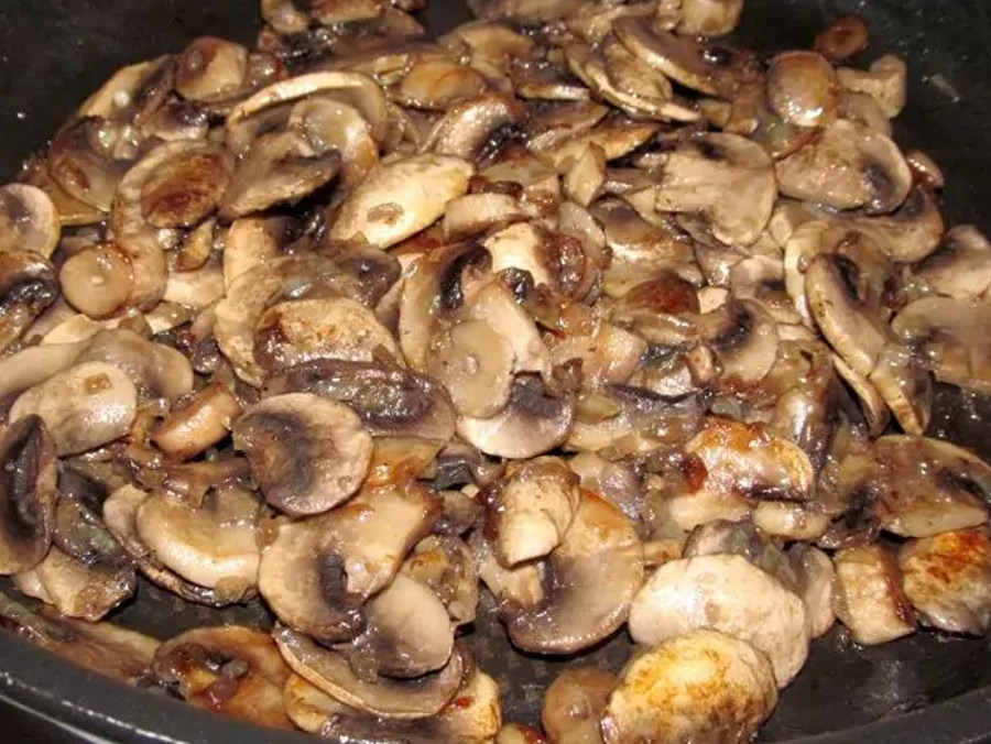 Обжариваем измельченные грибы до готовности. Солим, перчим.