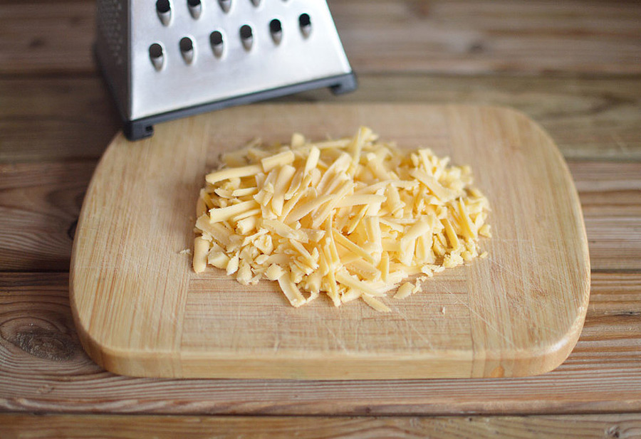 Шаг 4: Сыр трём на крупной тёрке.