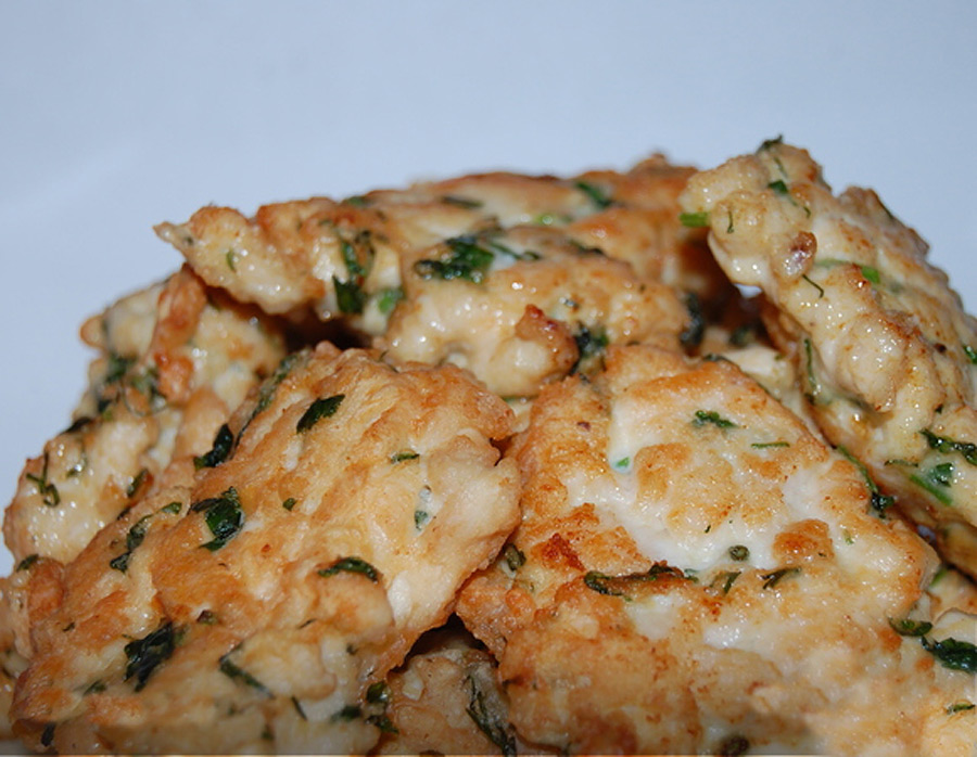 Мякоть белого хлеба наломать и залить сливками. Одно куриное филе пропустить через мясорубку вместе с чесноком и отжатым хлебом и луком, второе нарубить мелко ножом. Благодаря такой технике котлеты станут сочными и в то же время нежными по консистенции.