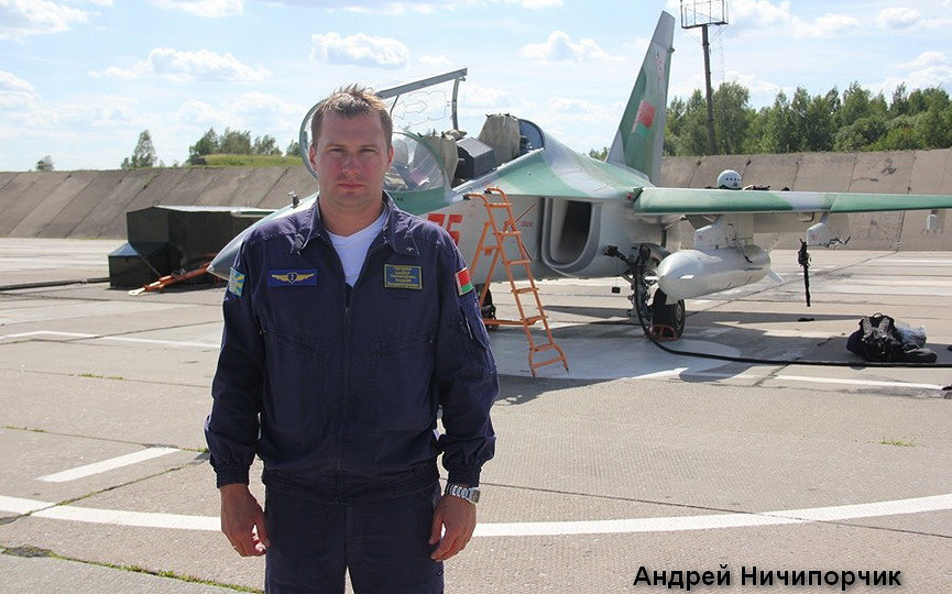 Полет выполняли командир звена учебно-боевой эскадрильи 116-й шаб майор Андрей Владимирович Ничипорчик и летчик звена учебно-боевой эскадрильи на Як-130 116-й шаб лейтенант Никита Борисович Куканенко.