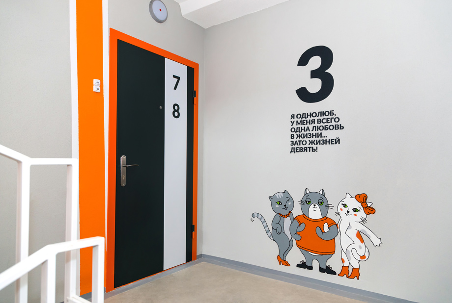 Все квартиры расположены в ярком трехэтажном доме с четвертым мансардным этажом. На стенах подъездов вместо привычной «народной» живописи — всеобщий любимец жителей кот Борис, символ квартала. Попробуйте вернуться домой в плохом настроении и не улыбнуться, пройдя мимо него — такого не получится!