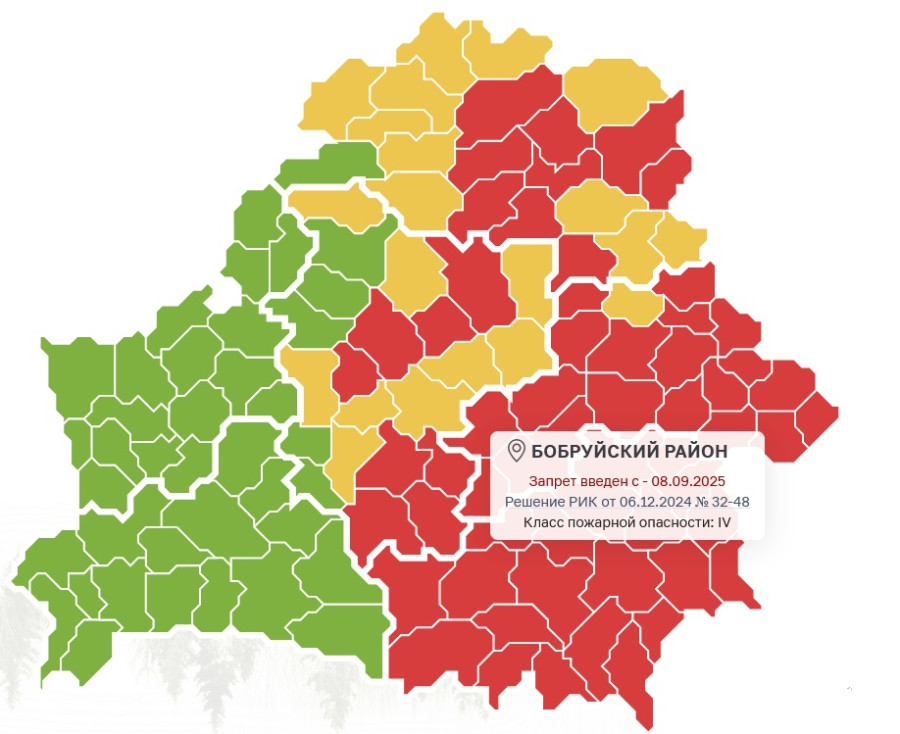 В большинстве районов Беларуси введены запреты и ограничения на посещение лесов. Об этом свидетельствуют данные интерактивной карты на официальном сайте Министерства лесного хозяйства Беларуси.